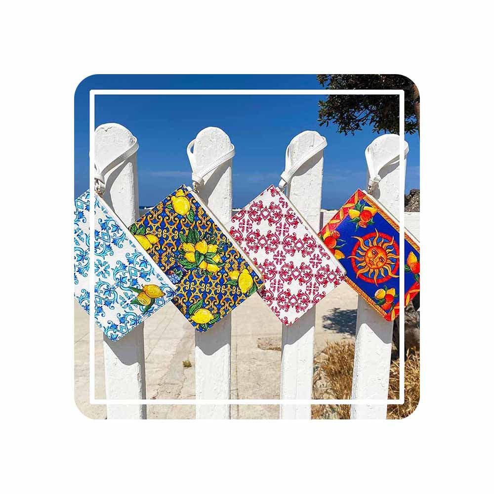 Bring classic Italian scenes to life on your arm. The clutch bag/wristlet collection celebrates the fruits, sights and icons of Italia, featuring unique hand-painted designs and the colours of la dolce vita. From Capri's famous lemons, to the maiolica tiles of the Amalfi Coast, turn any day into a moment in Italy, wherever you are.